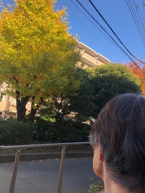 外に出ることにとてもうれしいと喜んでくださいました!イチョウだけではなくで駐車場側の日光が差し込む場所でしばらく外気浴もして頂きましたよ!近所の方が声をかけて頂いてあいさつしたり、交流も出来て良かったですね!