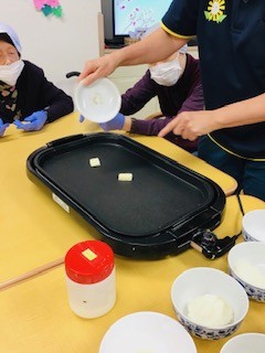片栗粉をまぶしたお餅を、焼いていきましょう~(^^♪