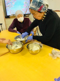 皆さん好きな大きさで、お餅の形に丸めていきます(^^♪