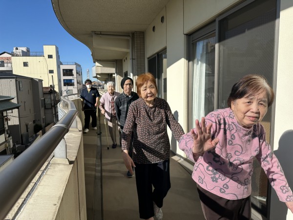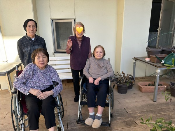 雲ひとつない青空が広がるなか、ベランダを皆さんで散歩中です!