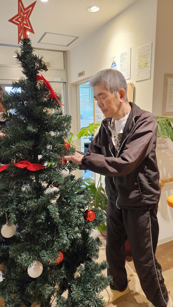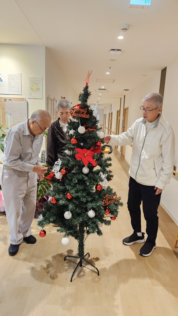 先日、クリスマスツリーが届いたので1Fの皆さんで飾り付けを行っていただきました☆彡