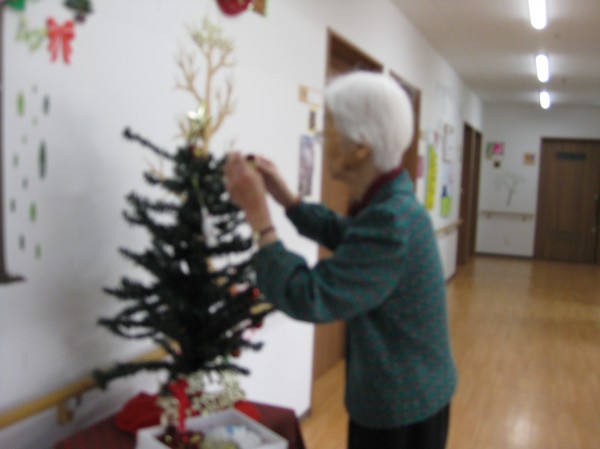 笑顔で楽しく飾りました。もうクリスマスなの?? と話され早いものですね?とビックリされておられました。綺麗に飾り付けが終えました。