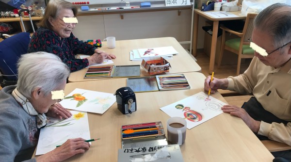 「見本通りにやらなくてもいいのよ。自由に塗りましょ。」