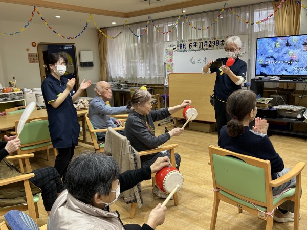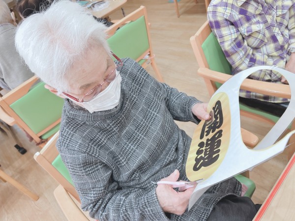 をセンサー長の掛け声と共に職員、ご利用者様の招福を