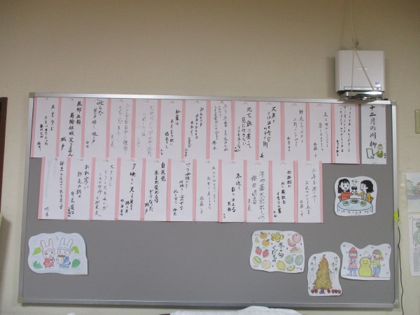 本日午後のレクリエーションは【川柳】です。年越し川柳ということで、12月や年末をイメージする川柳を考えていただきました。素晴らしい作品がそろいました。ぜひ、展示コーナーをご覧ください♪