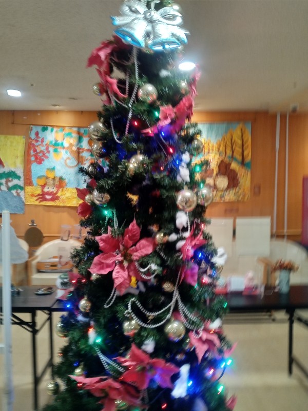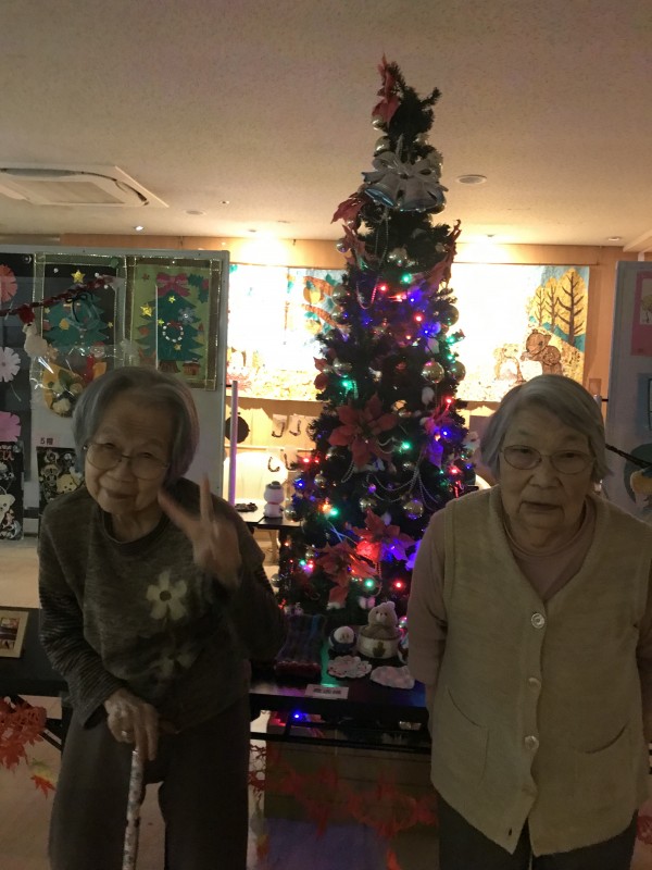 夕方になると照明を落として、クリスマスツリーがライトアップされるのでご利用者様に鑑賞して頂きました!