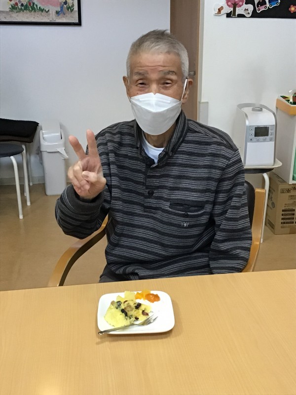 おやつは蒸しパンに果物を添えて