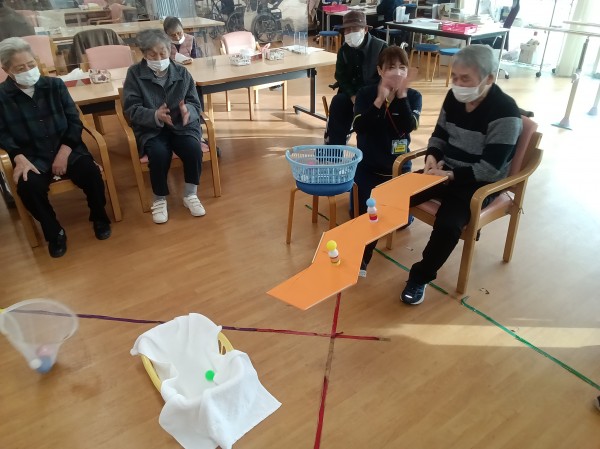 沢山のピンポン玉がカゴに入れば、点数が高くなります。