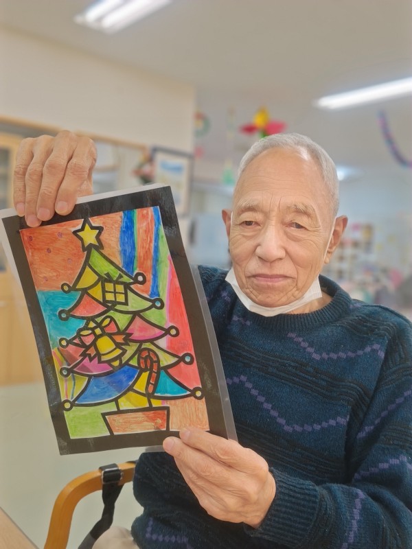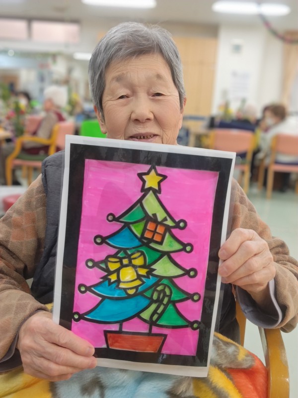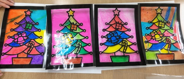 ツリーモチーフのステンドグラス風飾り作りをしていただきました!