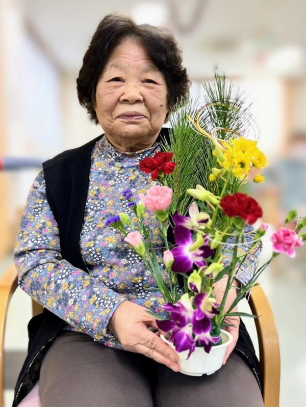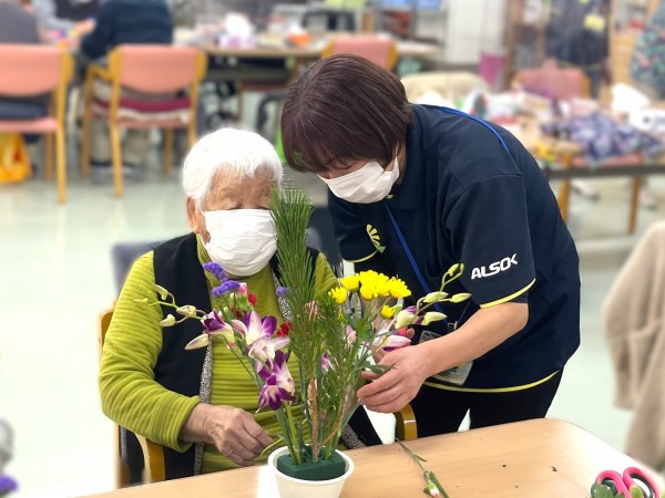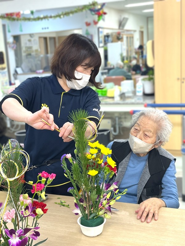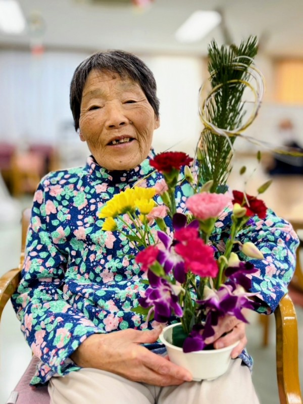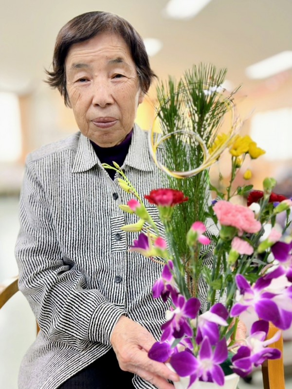 お正月バージョンのフラワーアレンジメント完成です♪