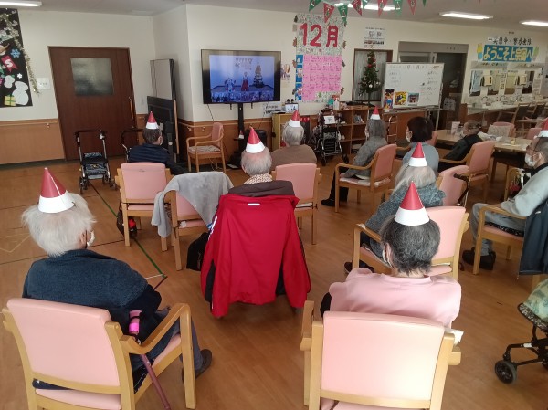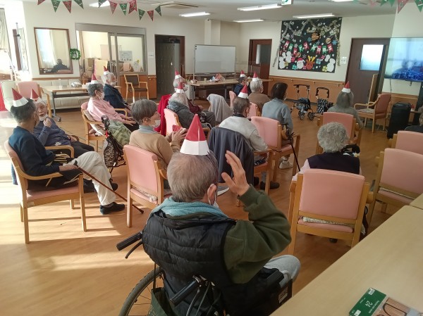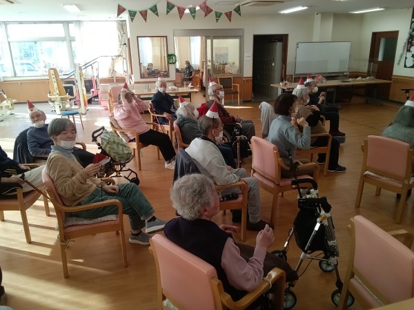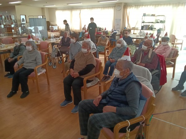 多くの利用者様たちが、クリスマス用のサンタクロースの帽子をかぶってくださいました。