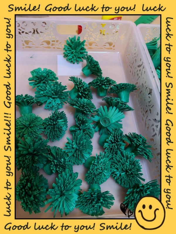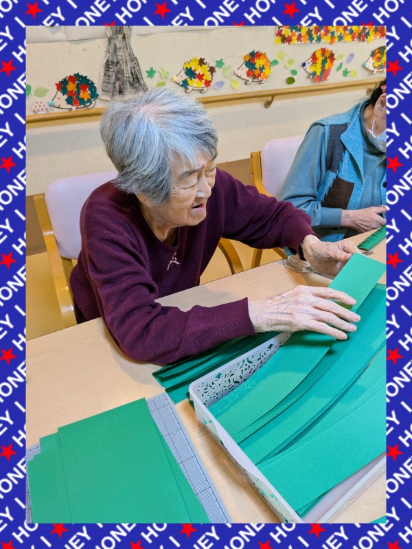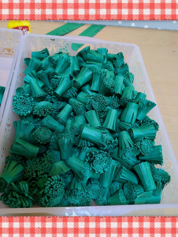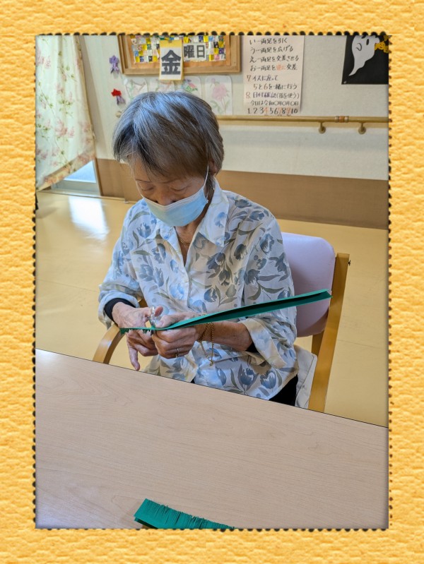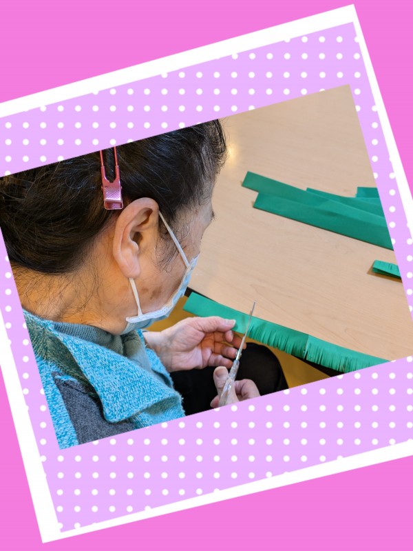 大量の色画用紙を半分に折って・・・切り込みを入れていく~