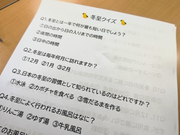 レクリエーションの時間には冬至にまつわる雑学クイズ!