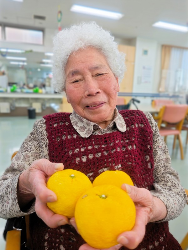 最後に柚子を持ってるお写真撮らせて~と持っていくと「いい香り~」と鼻をよせて楽しまれていました!