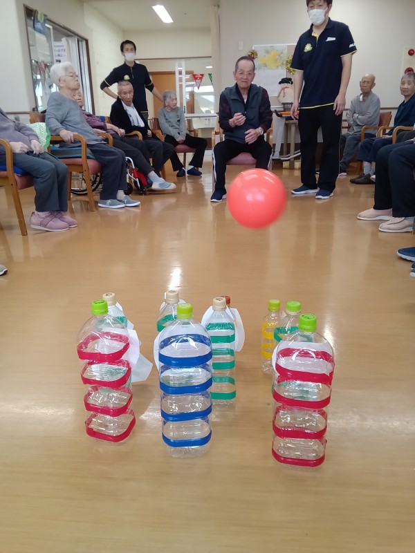 3回投げていただき、ペットボトルのピンを倒し一番得点の高い方が優勝です。