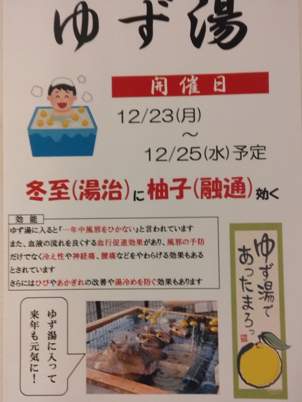 12/23~25 冬至に「ゆず湯♨」を実施\( 'ω')/