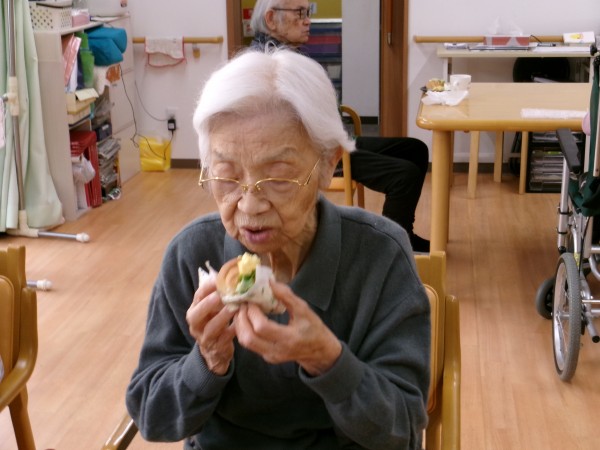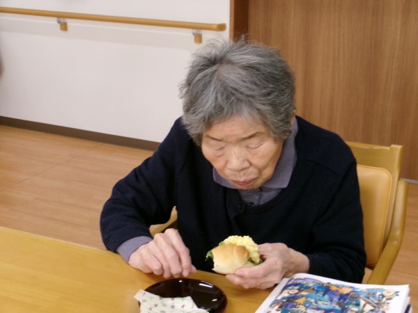 玉子サンドパンを作りました。とお伝えすると、今日は何の日ですか? 何かあるの? と喜ばれていました(*^^)v みなさまに食べていただきたく作りましたとお話しすると「本当に嬉しい!いつもありがとう!」とあっという間に完食されました。美味しかったです!との声です。 美味しそうに召し上がっていますね(*^_^*) また、作ってね?とリクエストされました(*^_^*)