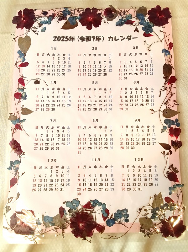 素敵な手作りの押し花カレンダーを頂きました♪((o(*°▽°*)o))岩槻本町
