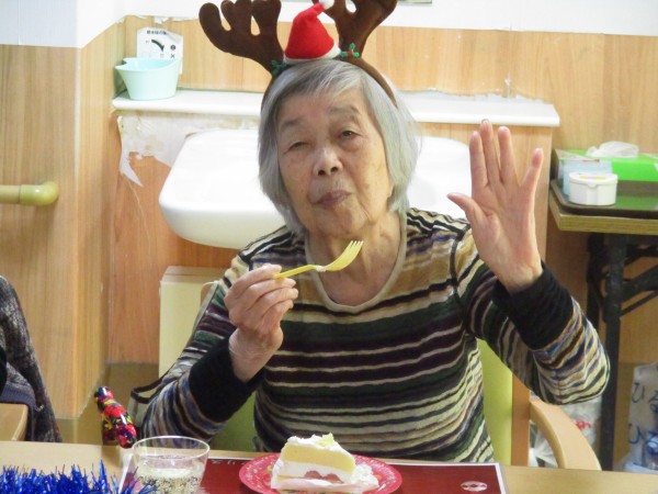 本日は、おやつにシャンメリーとケーキをご用意し、召し上がっていただきました!