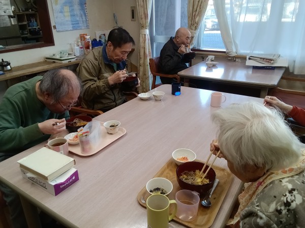 本日は大晦日ということで、ご利用者様にお蕎麦を召し上がっていただきました。
