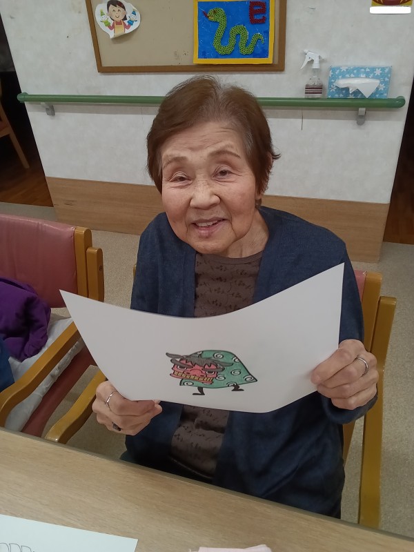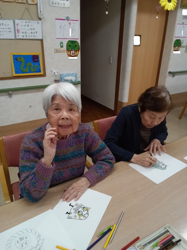 お正月にちなんだ塗り絵を行なったのですが、素敵な写真が撮れてしまったので、ぜひご紹介したいと思います(*^^)v