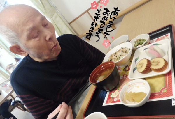 ・・・さて、元旦にはおせち料理を召し上がっていただきました!