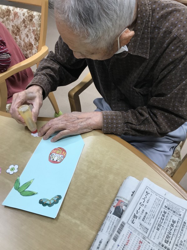 お正月の三が日はお正月の気分を満喫して頂く為に、紙で作った羽子板を居室に飾り居室も賑やかになりました('◇')ゞ
