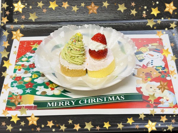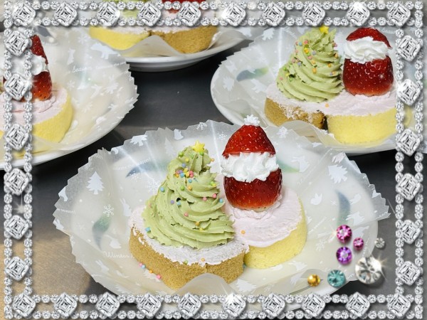 スタッフ渾身のミニツリー&いちごサンタクロースの乗ったロールケーキです☆彡