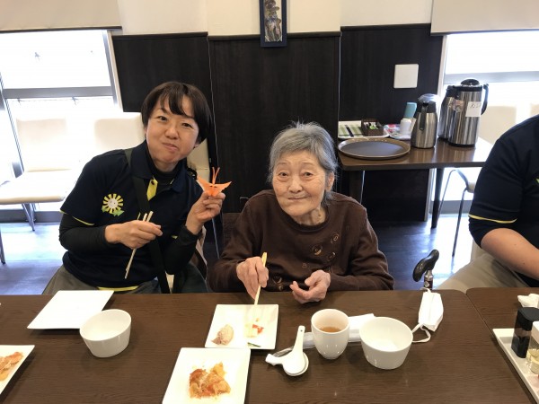 風の音さんにマイクロバスやキャラバンで送迎していただきました。以前は車いす用の介助車両もあったのですが、それが出来なくなってしまったので、別途で介護タクシーを手配し1Fと2F合同にて行ってきました