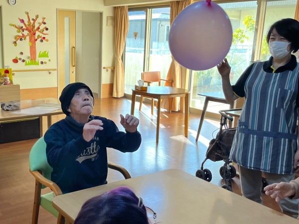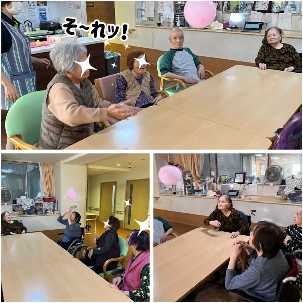 車椅子から前のめりでパスする方や、椅子から立ち上がって風船を返す方やらで