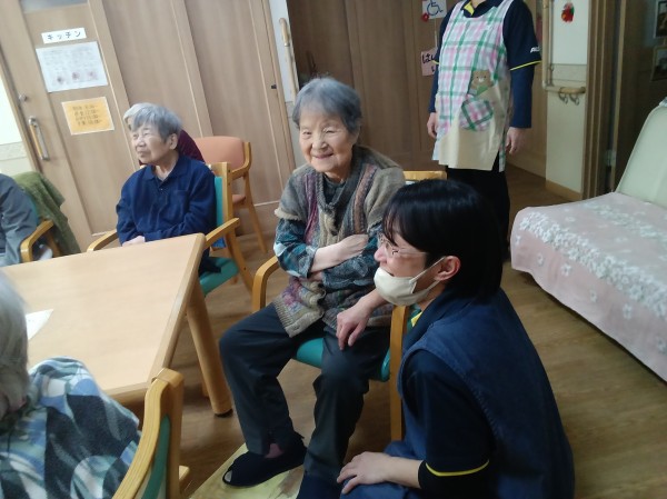 職員もご利用者様の声かけ、介助しながら一緒に参加してます。