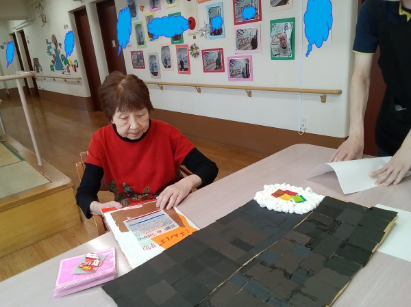 2階では、ご利用者様にもお手伝いいただき、壁紙装飾を製作中です。