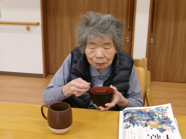 鏡開きにお汁粉を作り召し上がっていただきました。美味しいわ!美味しい!と召し上がって下さいました(*^_^*) 食べ物って健康そのものですね(笑)