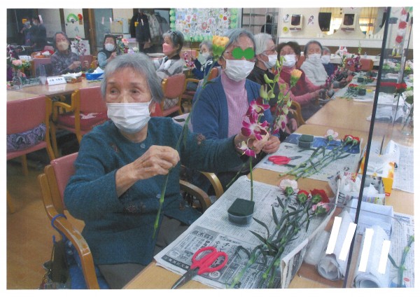 本日午後のレクリエーションは【フラワーアレンジメント教室】