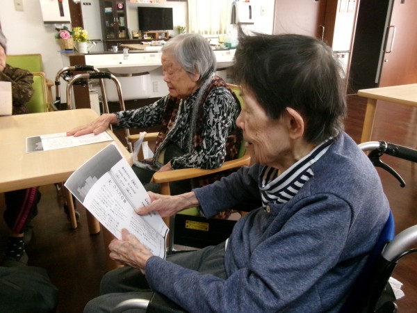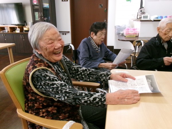 歌い始めると、皆さんの表情が明るくなり、楽しそうに声を合わせる姿がとても印象的でした。歌詞を思い出しながら、一緒に歌うことで、昔の思い出がよみがえってきたようです。
