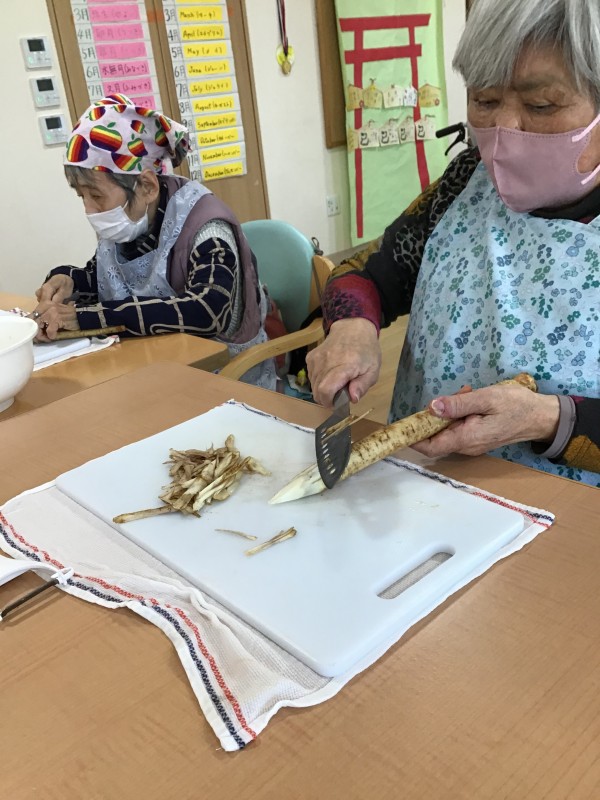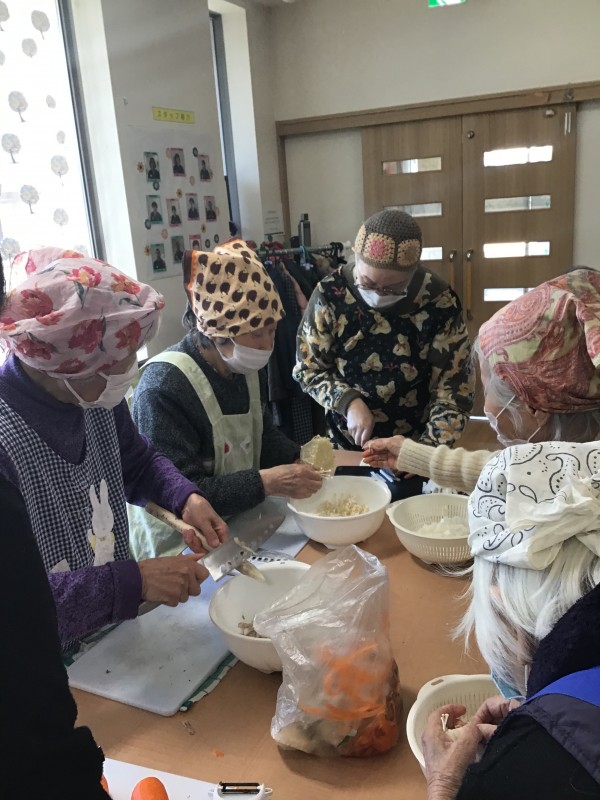 お汁粉作りの次は、豚汁作りを