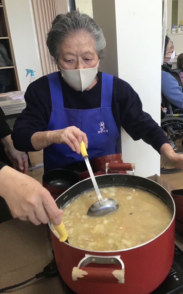 みなさんで協力して作った豚汁。