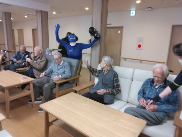 普段は2階フロアで行事レクを行っていましたが、外から鬼が入りたかったため1階にしました。