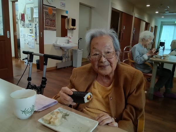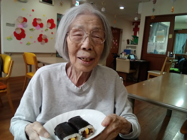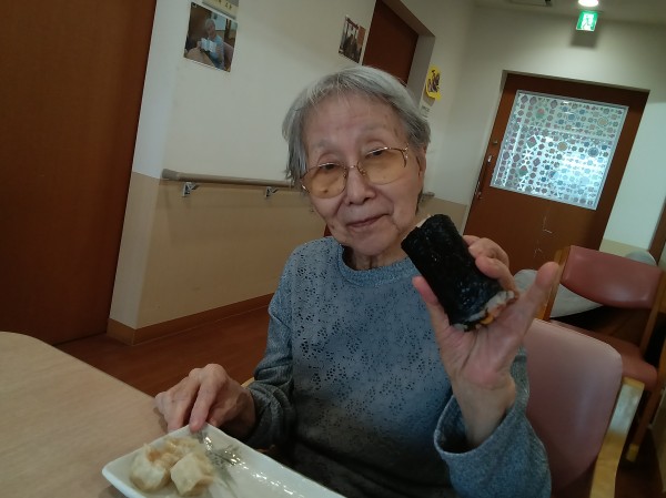 お昼にご飯の代わりに恵方巻をご用意して皆様に食べて頂きました。
