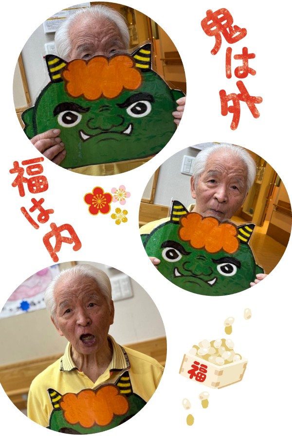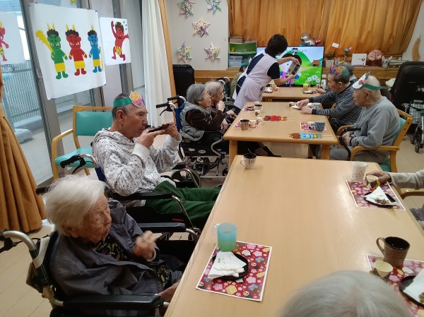 豆まき完了!!後もおやつ前にたくさんお話され笑い声が響き渡りとっても和やかな雰囲気です~^^v