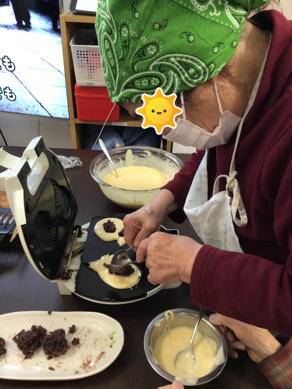 豆まきの後は、食後に利用者様に作っていただいたたい焼きをみんなで食べました(*^^*)