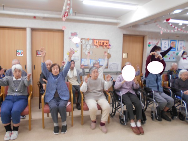 職員による出し物、ヤングマンの歌や踊りを披露し、皆さまリズムよく手拍子をされご覧になられています(^^)/