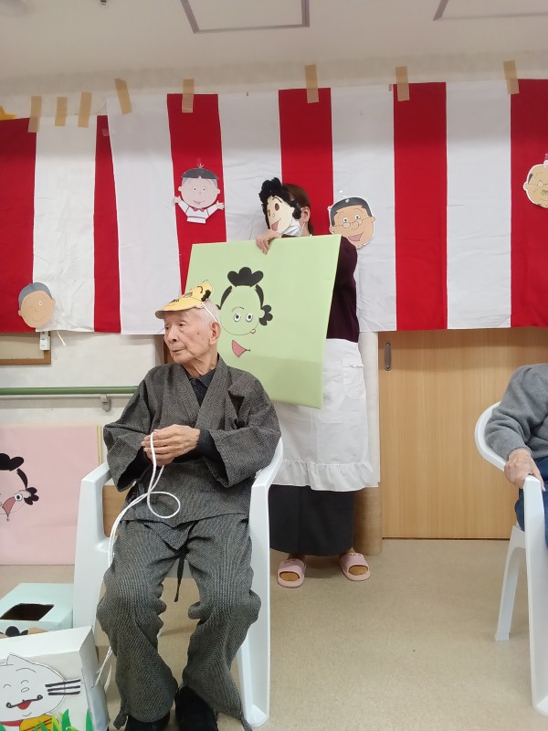 サザエさん一家による福笑いや踊り、最後にはじゃんけんを行いました(^^♪