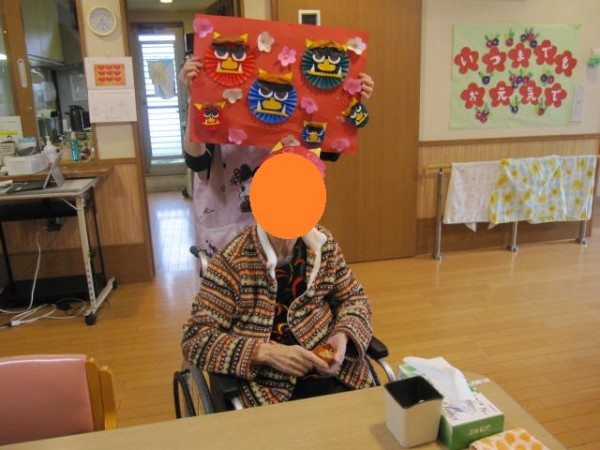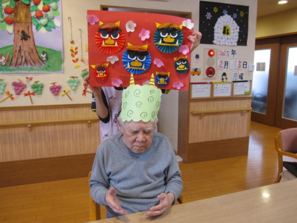 「かわいいわねぇ」「豆まきしたから?」「お部屋に飾ろうかしら…」と、ご利用者の皆さんから好評でございました!