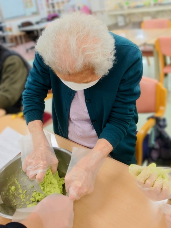 力を込めて捏ねていると「うどんを捏ねてるみたい」と言う方も…