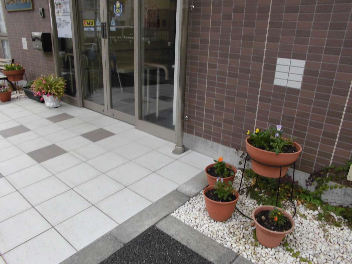 施設の外にある花々も、園芸担当のスタッフが “パンジー&ビオラ” に植替えてくれました(*^_^*)