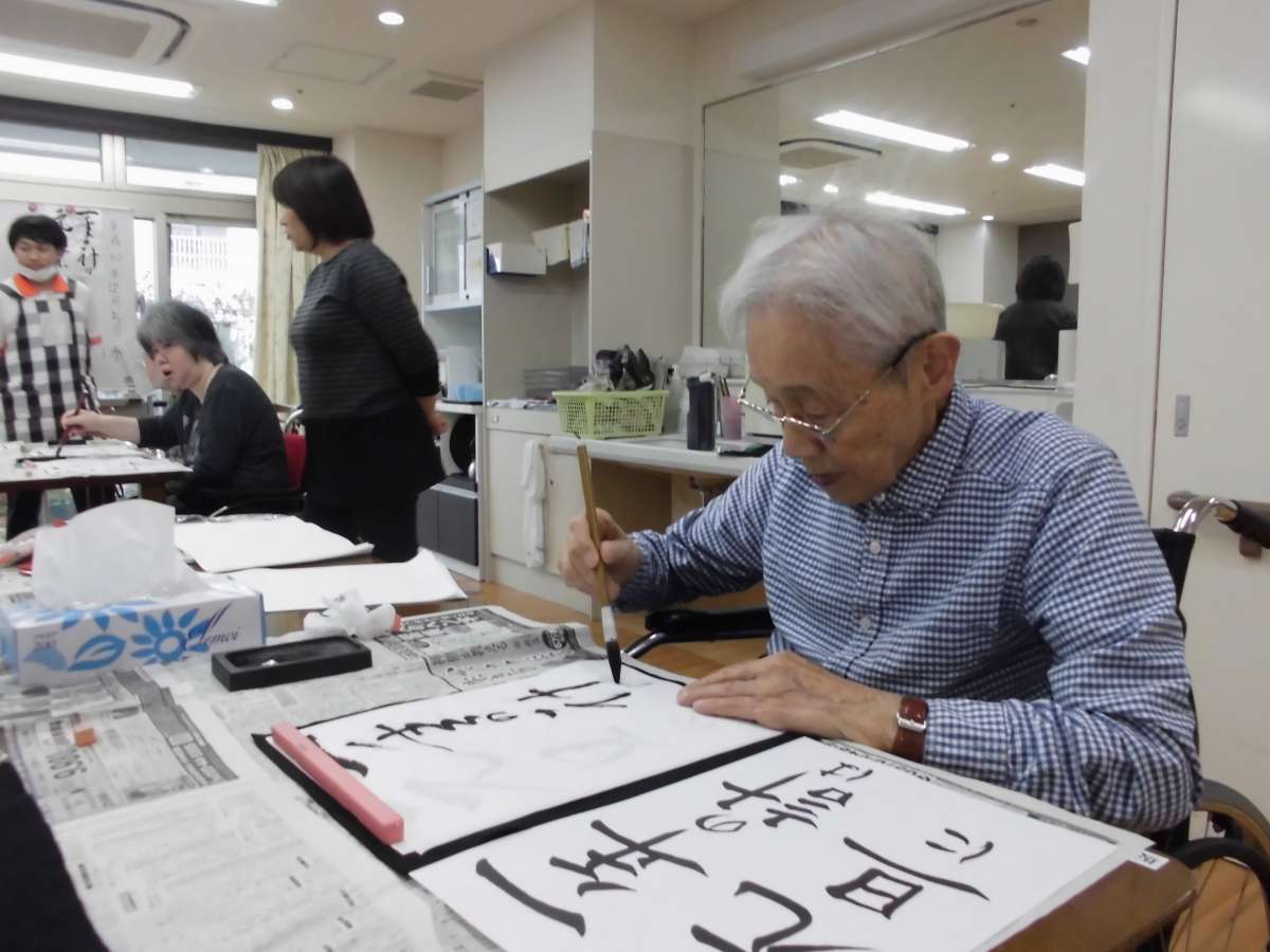 書道レクは鈴木先生に教えてもらいながら、書皆様真剣に取り組んでいましたよ♪
