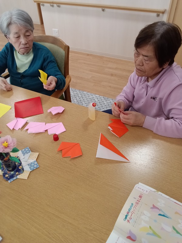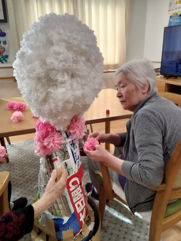 外はまだまだ寒い日が続きますが、各フロアでは季節の飾り作りで春の足音が聞こえてきています♪