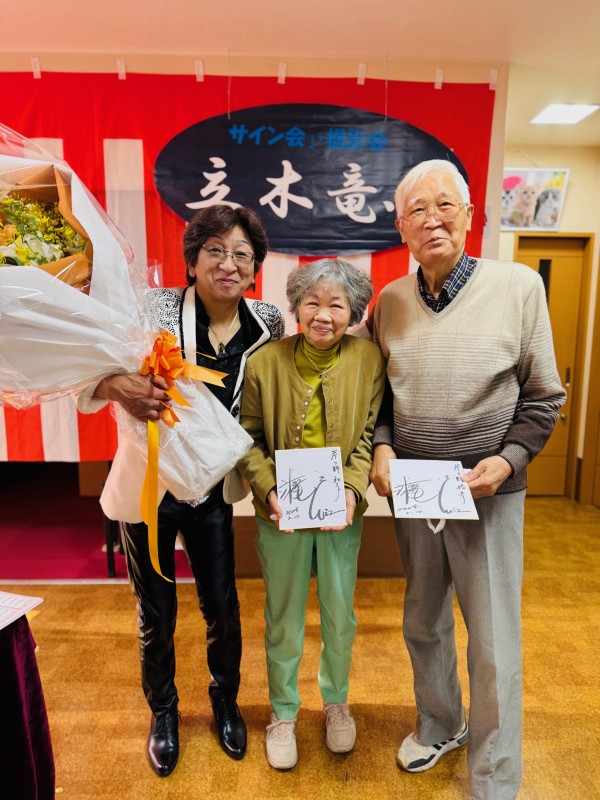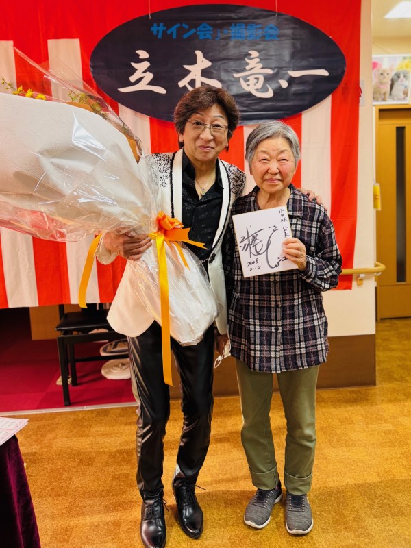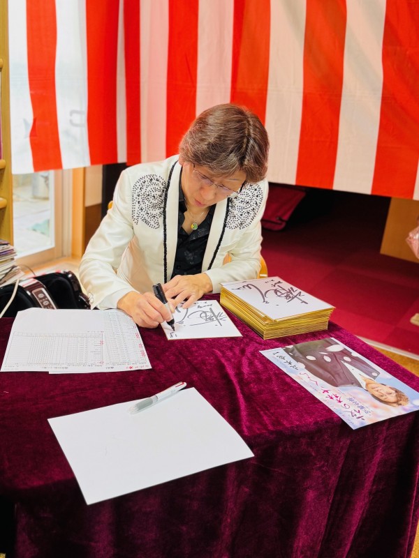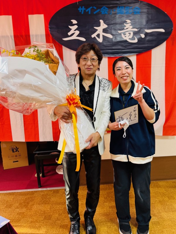 立木竜、一さんのオリジナル曲は勿論、北島三郎さんの「まつり」等親しみの深い曲も披露して下さいました。中に「今日はお母さん(女性)が多いから鳥羽一郎さんの「海の匂いのお母さん」を選曲してきました」とのお話があり、お客様を第一に考えて下さっている姿勢に感動しました(笑)