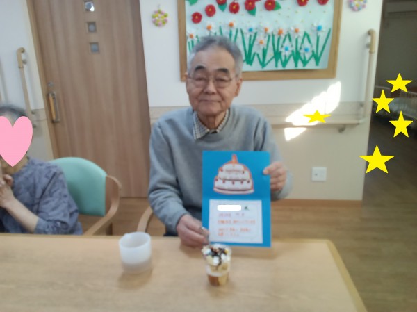 誕生日カードと歌でお祝いしました。